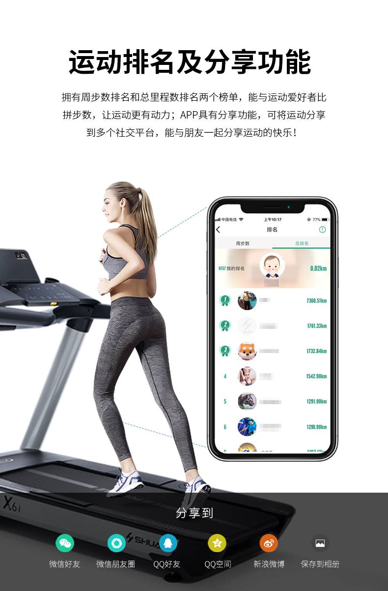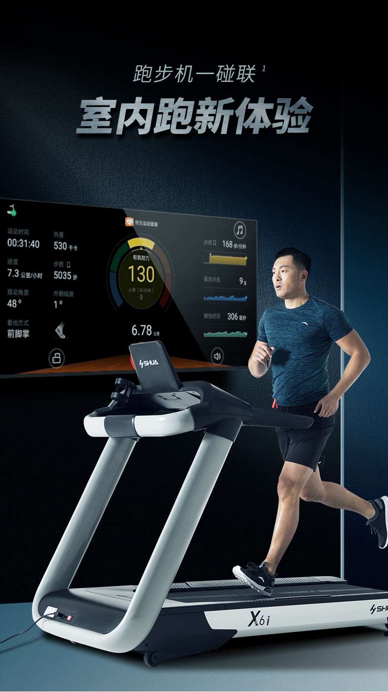 球王会跑步机-X6心率跑步机,可根据用户运动是实时心率,跑步机自动调节跑步速度、坡度等进行运动强度的调节,更科学;X6i华为版跑步机,可以通过连接华为运动健康APP,监测多种类型跑步数据。欢迎来电咨询~