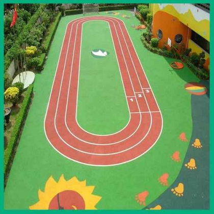 EPDM塑胶跑道采用无污染废旧橡胶原料,用制造橡胶颗粒专用设备加工而成。多棱多面不规则橡胶颗粒混合搭配适宜,规格分级标准,纤维、粉尘等杂质含量控制1%以内,与铺装塑胶各类球场的树脂、固化剂等原料共混粘结牢固性好。用该专用橡胶颗粒制造的产品,弹性适中,虚实适度,外观漂亮,符合国家标准,具有弹性适中、防滑、渗水性好、耐磨、阻燃、无毒无放射、抗老化、寿命。适用于铺设体育比赛跑道、篮球场、体操房、休闲广场、老年公寓、幼儿园、豪华办公、家庭院阁等特殊环境铺张。