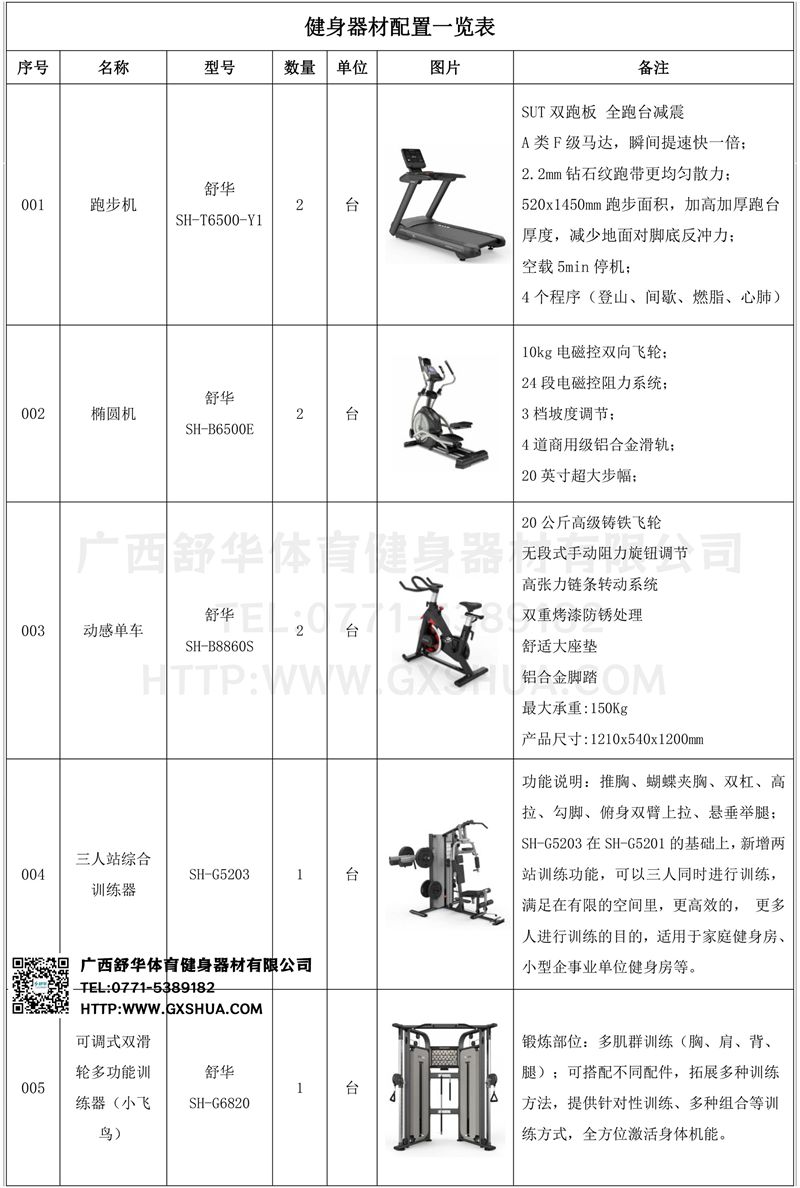 1.球王会X5高端跑步机SH-T6500*3台-新X5拥有740mm的宽敞跑台,520mm宽跑带,跑步时更畅快无拘束。搭载SUT全跑台减震系统,针对跑步冲击区进行前、中、后以及双侧全方面避震,有效分散跑步时对跑者膝盖和踝关节的冲击,跑步也能更护膝。采用T18MM跑板+5MM减震棉+T12MM双层专利跑板减震结构设计的韧性跑板,承重力强,回弹舒适,带来缓震护足的舒适跑步体验。搭载了一颗持续马力2.5HP,峰值马力5.0HP的强劲动力马达,能为跑步提供源源不断的动力,让跑步流畅不卡顿。跑步机的速度可达18km/h,能够满足更专业的跑步锻炼需求。