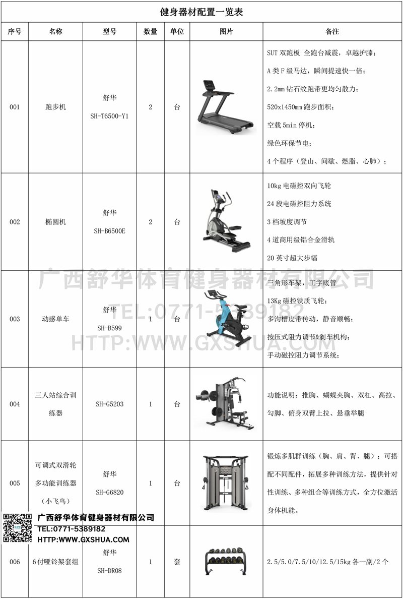 1.球王会X5跑步机SH-T6500*2台-新X5拥有740mm的宽敞跑台,520mm宽跑带,跑步时更畅快无拘束。搭载SUT全跑台减震系统,针对跑步冲击区进行前、中、后以及双侧全方面避震,有效分散跑步时对跑者膝盖和踝关节的冲击,跑步也能更护膝。采用T18MM跑板+5MM减震棉+T12MM双层专利跑板减震结构设计的韧性跑板,承重力强,回弹舒适,带来缓震护足的舒适跑步体验。