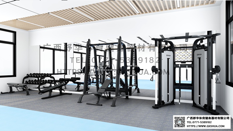 小飞鸟(1台),史密斯机(1台),多重可调节练习椅(1台),腹肌训练器(1台),6付哑铃套组(1套),可调哑铃凳(1张),可以实现对不同肌肉群的针对性训练,满足肌肉训练需求,全方位激活身体机能。