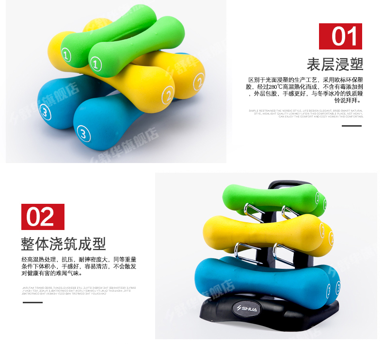 球王会SHUA浸塑哑铃套装 家用男士女士健身时尚环保健身运动器材