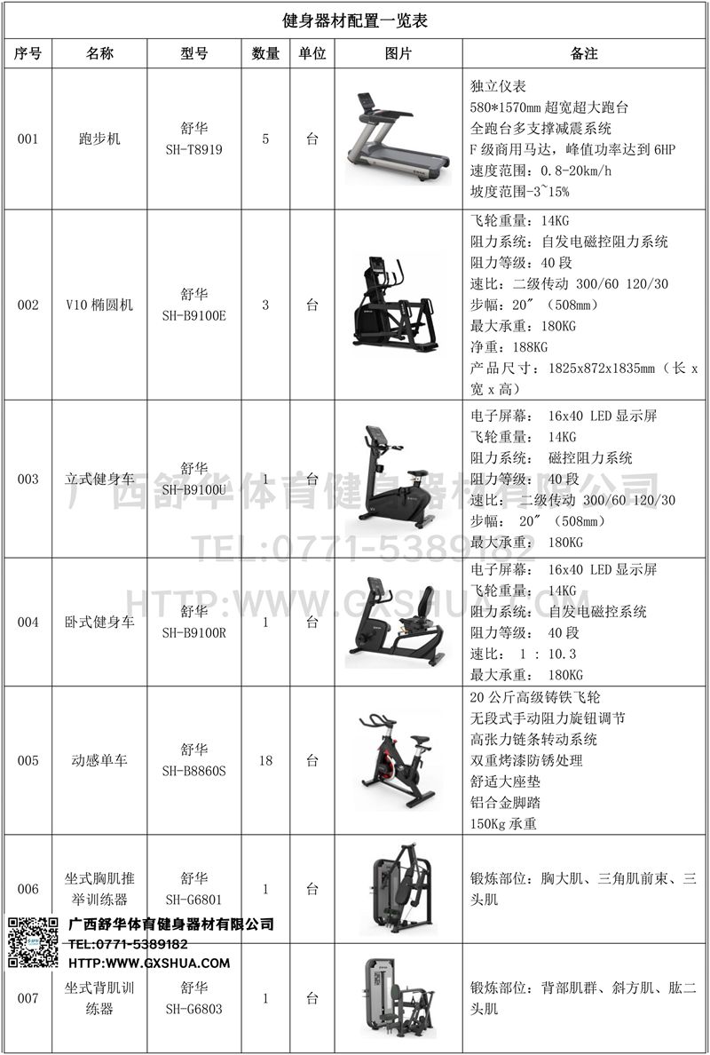 1.球王会V9跑步机SH-T8919*5台-独立仪表-简洁大气,全新外观设计,健康运动新选择;心率监测功能,可通过手握心率、无线心率带等不同方式实时采集心率数据;580*1570mm超宽超大跑台-跑感舒适,跑台整体安全稳定;全跑台多支撑减震平台,保证跑台超强支撑力,达到180kg支撑,满足专业健身房需求。